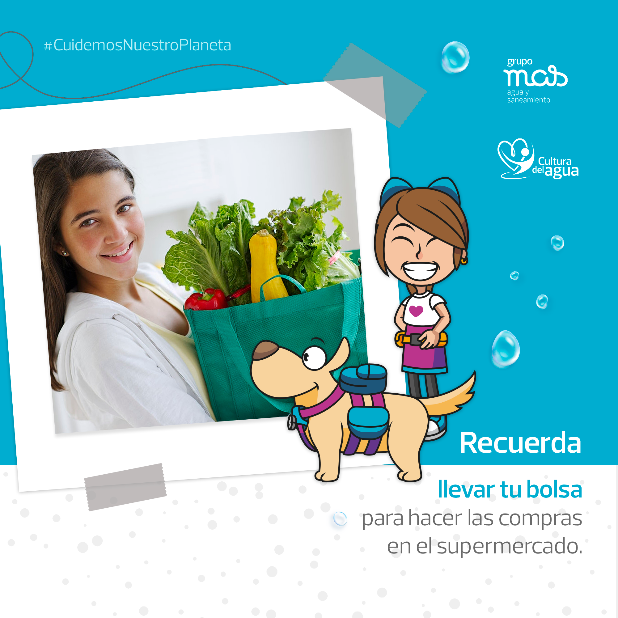 - Recuerda llevar tu bolsa reutilizable para hacer las compras en el supermercado, con ello logramos la reducir el consumo de bolsas de plástico.