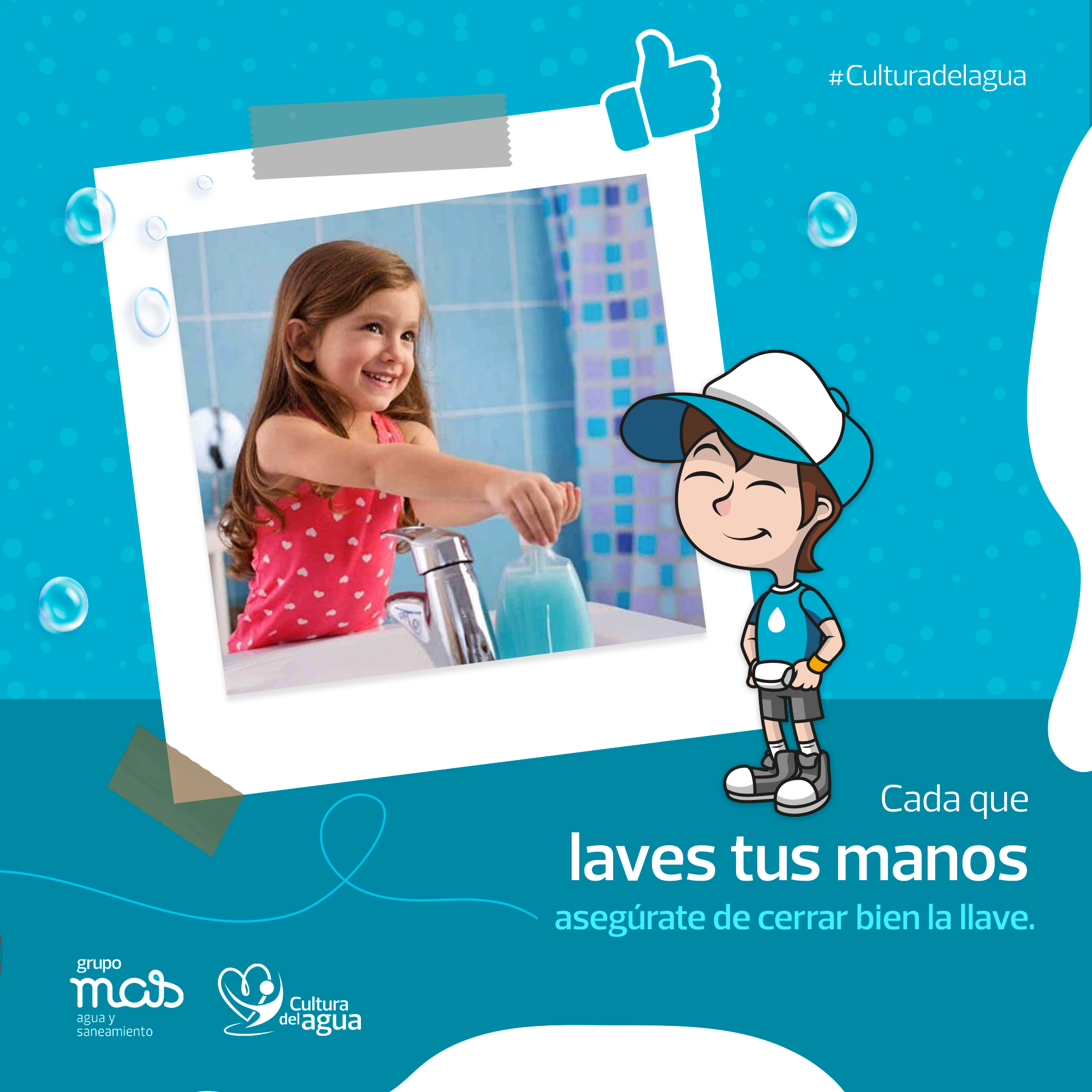 - Cada que laves tus manos asegúrate de cerrar bien la llave.